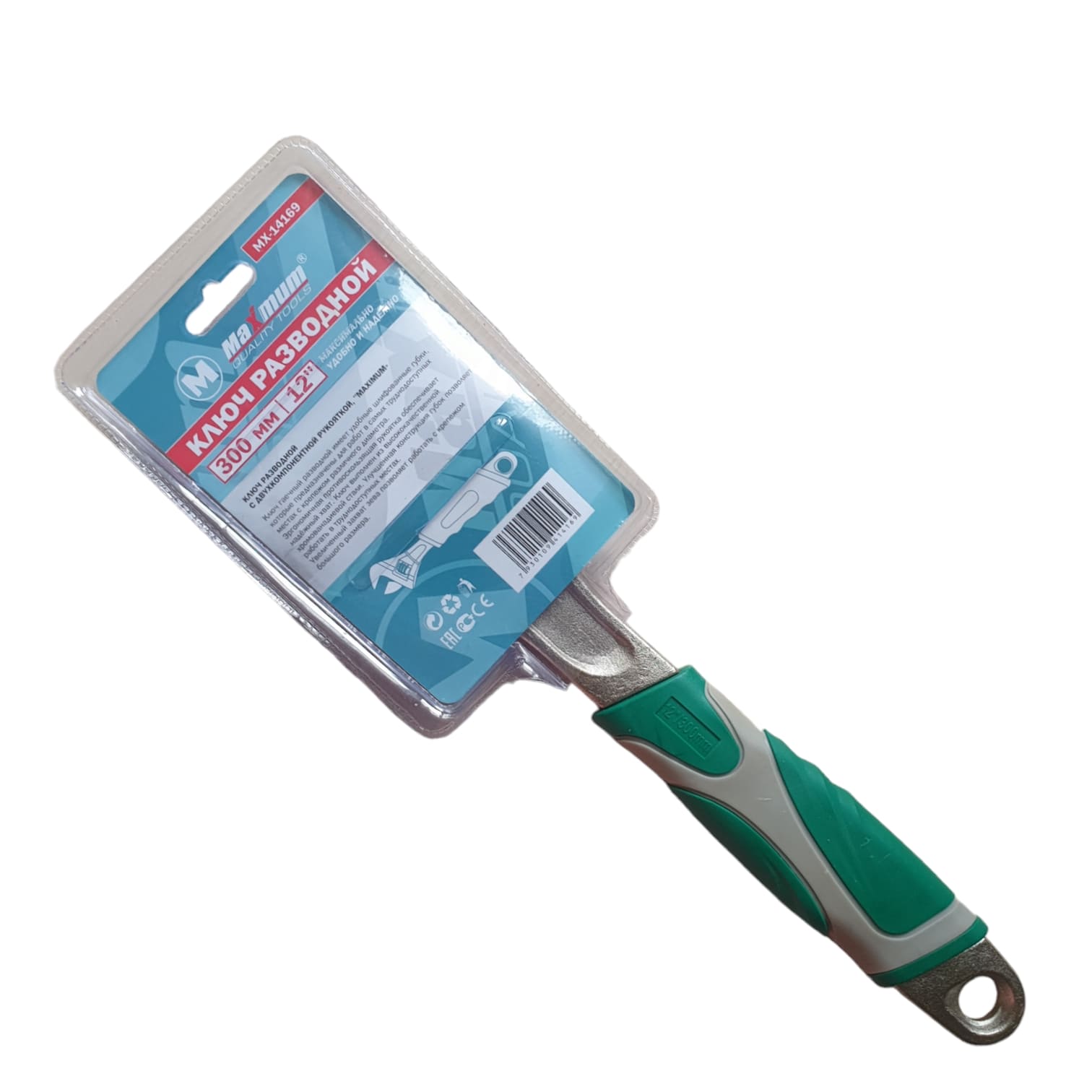 Ключ разводной 300 мм с двухкомпонентной рукояткой,тонкие губки,фосфатированный, "MAXIMUM" МХ 5577-1