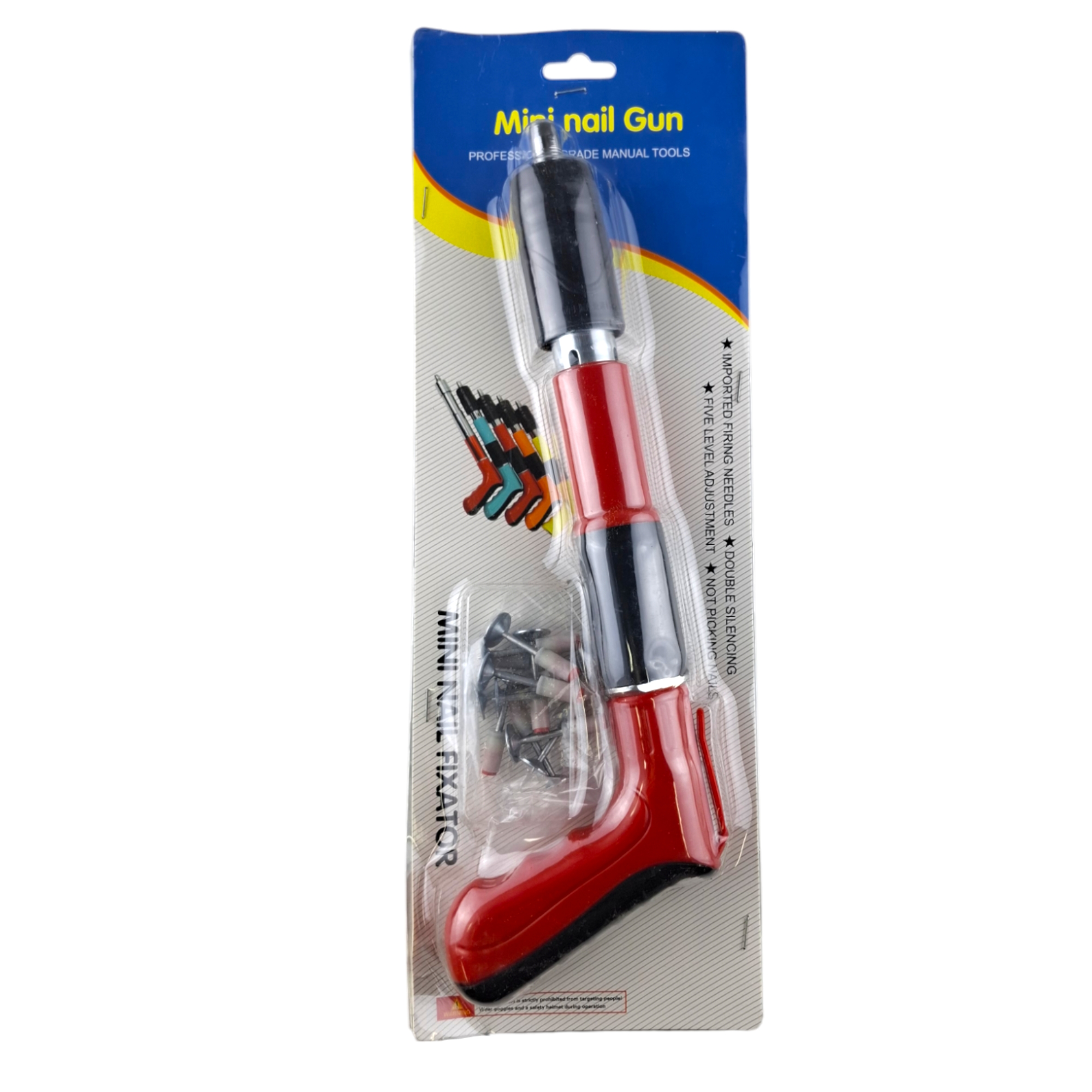 Гвоздезабивной пистолет изготовлен из высококачественного металла и ударопрочного пластика.